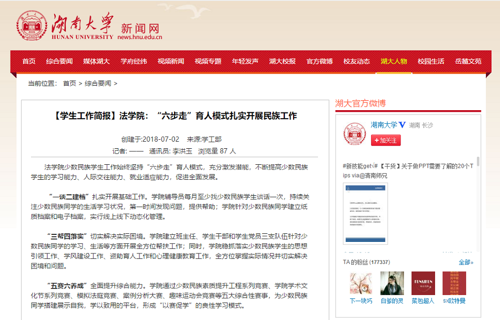 少数民族学生工作始终坚持“六步走”育人模式,充分激发潜能,不断提高少数民族学生的学习能力、人际交往能力、就业适应能力,促进全面发展。