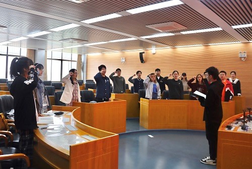 团委在院521教室开展重温入团誓词活动,学院团委、学生会骨干参加活动。