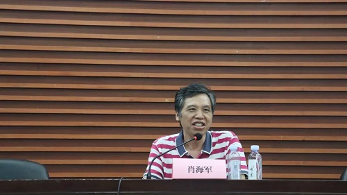 肖海军教授对全体新生做学术道德及学术规范讲座。肖老师提到,在做学术研究时,要做到四点:思要过脑,文必己出;论则有据,逢据必引;有引必注,注必原文;字词句章,斟酌校行。另外他还特别强调学者最重要的是学术诚信,切勿抄袭。最后肖老师预祝大家在湖大度过愉快的学习时光。