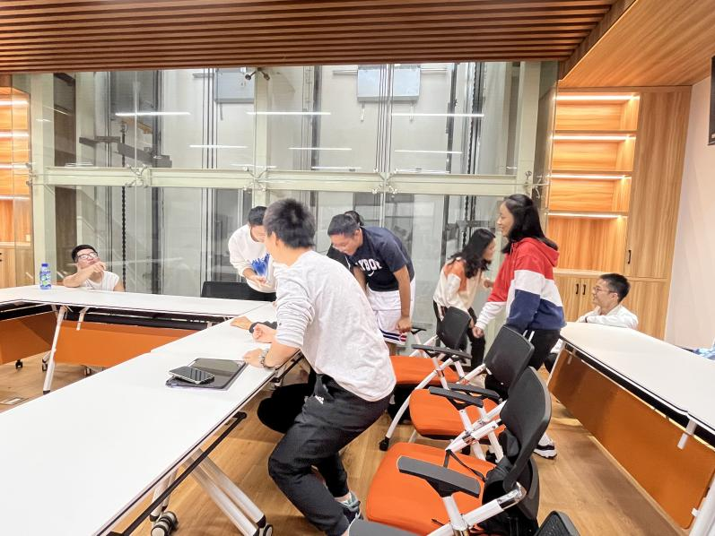本次团辅共分为三个阶段。在热身阶段中,通过“成长三部曲”小游戏将心理辅导内容与趣味游戏相结合,同学们以猜拳来实现从蹲着——鸡蛋、半蹲——小鸡到站立——大鸡的阶段成长,在同学们分享感悟的基础上,曹老师也勉励同学们在大学新的起点要勇于尝试不放弃,努力怀着希望向最终的目标努力。
