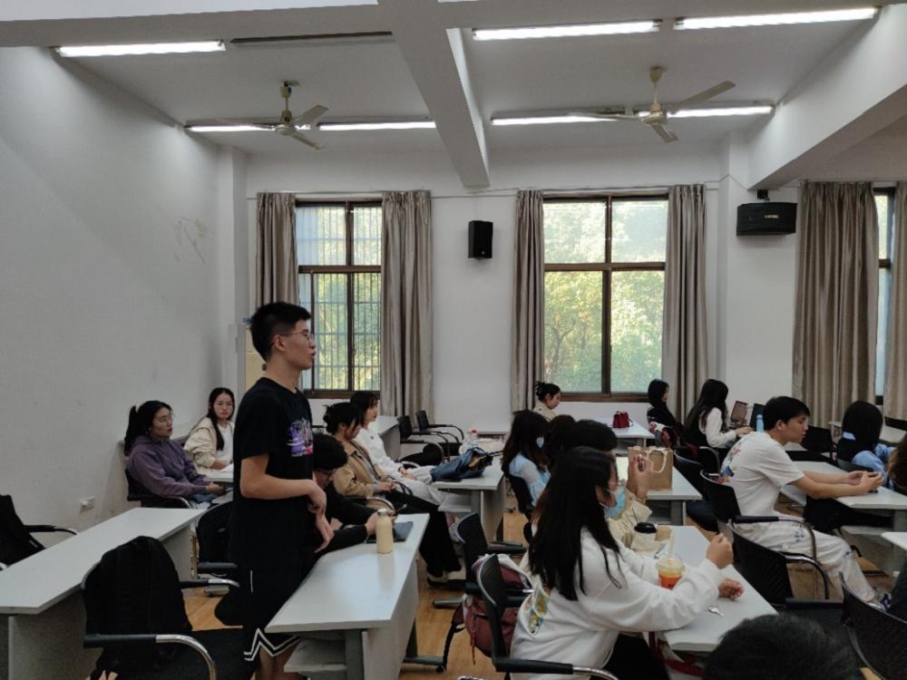 紧接着,研会新成员各自展开工作成果与心得分享,活动部彭志勇同学分享了在筹备篮球赛过程中的宝贵经验,科研创新部王小川同学了总结了自己在组织活动过程中发现的问题并提出了改进建议,新媒体中心林婷同学就公众号运营、创新推文内容、新闻稿件的攥写分享了自己的工作经验及感悟,她表示加入新媒体中心不仅磨练了写稿成文的能力,还收获了友谊、丰富了校园生活,希望在接下来一年与研会同学进行更多交流。