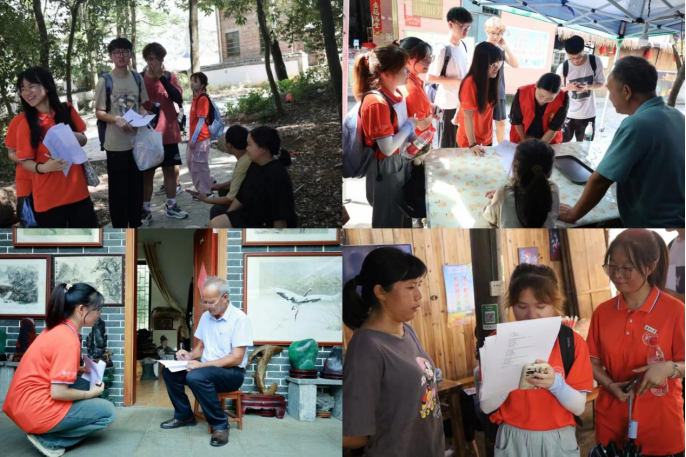 7月16日,在福溪村,团队成员们紧跟陈道增村支书的步伐,穿梭于古朴的巷陌之间,聆听他娓娓道来村庄近年来的发展与变革,以及当地资源的丰富与独特。走访之旅告一段落,他们带着满满的收获,展开了问卷调查,细心搜集每一份民意,为福溪村的未来绘就更加清晰的蓝图。