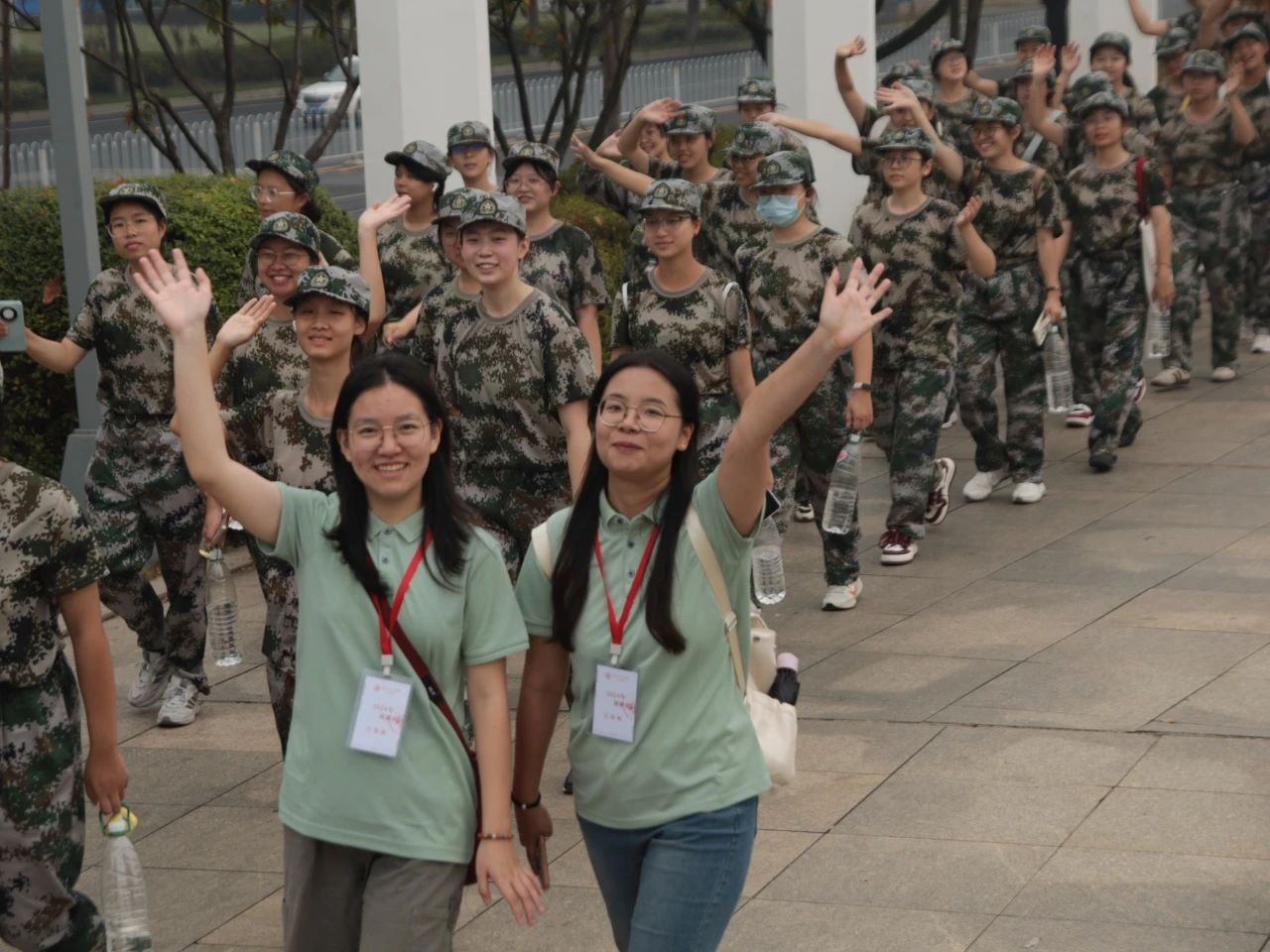 辅导员、教官和迎新团队全程陪伴在同学们身边,