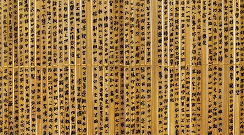 云梦睡虎地秦简,又称睡虎地秦简、云梦秦简,1975年12月在湖北省云梦县睡虎地的秦墓中出土。这批竹简是我国首次发现的秦代简牍,长约23.1至27.8厘米,宽约0.5至0.8厘米,字数超过4万字,书写时间大致为公元前256年至公元前217年,涵盖了秦昭王至秦始皇时期的内容。