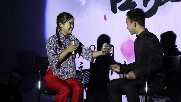 接下来,晚会进入了趣味横生的互动抽奖环节,观众们摇动手机,同主持人互动,抽取零食大礼包,现场气氛十分热烈。游戏过后,四位研究生带来了火热的舞蹈《Watch Boom》,引起现场阵阵尖叫。人生一世间,忽若暮春草,17级法学一班的同学们带来的歌曲串烧《给所有知道我名字的人》穿越时光,观众们伴随着往日的歌声与摇动的荧光,怀想着过去的“小确幸”。其后,17级法学二班带来的舞台剧《非诚勿扰小二班》别出心裁,将民族舞蹈、吉他演奏、相声小品巧妙结合,将一场意外不断的“相亲大会”呈献给了观众。爆笑过后,便是学院晚会的传统节目《新疆舞串烧》。来自全校各个学院的新疆学生受邀登上动漫色情片