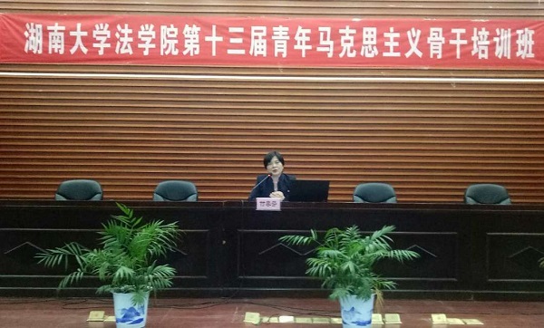 党委副书记、副院长付蓉芬老师以“传承湖湘文化,肩负责任使命”为主题为同学们讲授了第一期学习内容。付书记列举历史上的湖湘名人,引据湖湘先贤箴言,用幽默风趣、通俗易懂的解释使同学们贴近历史,充分领略湖湘先贤风范。付蓉芬老师用生动的经历讲述教育和引导广大干训班同学要爱国爱民、诚信友善、好好学习,努力工作,提高素质,带头践行社会主义核心价值观,带头践行“实事求是,敢为人先”的湖大校训,带头传承中华民族的优秀传统文化,为实现中华民族伟大复兴的中国梦而努力。