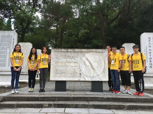 在御碑园和御碑长廊,同学们仔细查看碑文,并拍照记录。在1997年和1999年为纪念香港、澳门回归而立的石碑前,同学们驻足阅读碑文。碑文字里行间的流露着香港和澳门的回归昭示着中国综合国力的日渐强盛,以及“一国两制”思想所具有的强大生命力。在御碑园的中央预留着台湾回归祖国的石碑,同学们仔细阅读碑文中几代领导人关于台湾统一祖国的重要论述,期盼祖国早日实现完全统一和中华民族的伟大复兴。