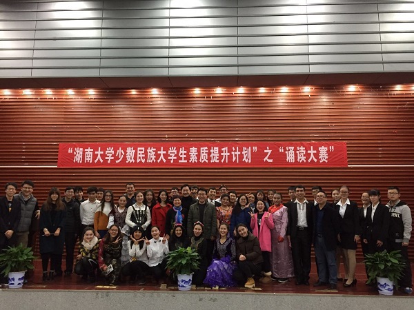 党委宣传部综合管理科科长戚家坦老师、学工部资助办主任刘明然老师、心理办向衍成老师以及新闻传播与影视艺术学院辅导员丁杨老师作为评委出席比赛,来自全校各院系的各民族学生代表参加比赛。