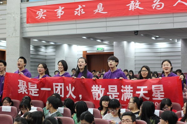 2014—2015年度五四答辩暨表彰大会在充满青春与朝气的中国共产主义青年团团歌声中圆满结束。(林义朗、杨凯)