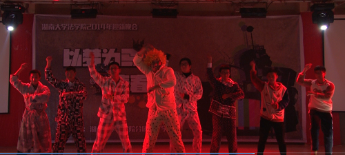 晚上七时许,晚会在充满激情与活力的开场舞《歌舞青春》中拉开帷幕,同学们以昂扬的姿态放飞梦想,拥抱青春。行政管理一班的舞台剧《甄嬛传》以精彩的表演、幽默的语言引发全场阵阵欢笑。行政管理二班的舞蹈串烧《bar bar bar》、《电话皇后》,政治学与行政学一班的舞蹈《美女与野兽》、2013级选送的孙植贤舞蹈《花蝴蝶》,以动感的节奏,欢快的舞蹈,跳出了同学们的青春与活力,激情与梦想。法学四班的节目《新闻联播》将迎新趣闻融于话剧当中,一男一女组成的“姐妹花”让观众们捧腹大笑。法学二班的舞台剧《凯妈的前世今生》、法学一班的歌舞剧《还珠格格之歌舞青春》嗨翻全场,同学们充分地展示了自己的想象力和创造力,不论是台词的设计,还是舞蹈的编排都突出了新意。由法学三班和年级会联合选送的歌舞《高人指点》,以经典曲目串烧配合搞笑、夸张的舞蹈表演,引来全场阵阵欢呼。