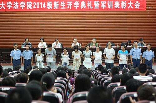 2014级新生军训优胜队列班”,2014级法学二班为“动漫色情片