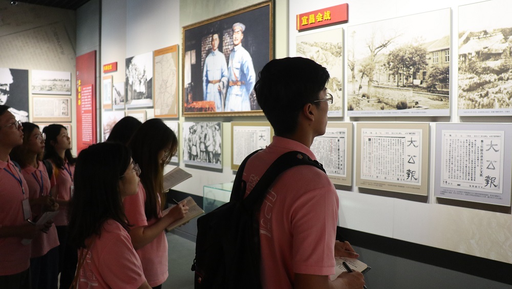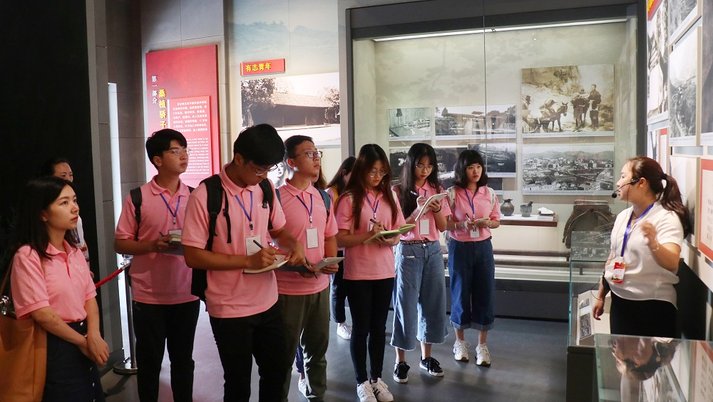 (团队在讲解员带领下学习贺龙元帅生平事迹)