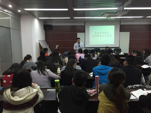 在一个多小时的时间里,两位学长结合自身的经历,围绕创新创业主题与同学们进行了交流,整场活动内容充实,氛围轻松,他们成功创业的感悟和诚恳的建议更令同学们受益匪浅。