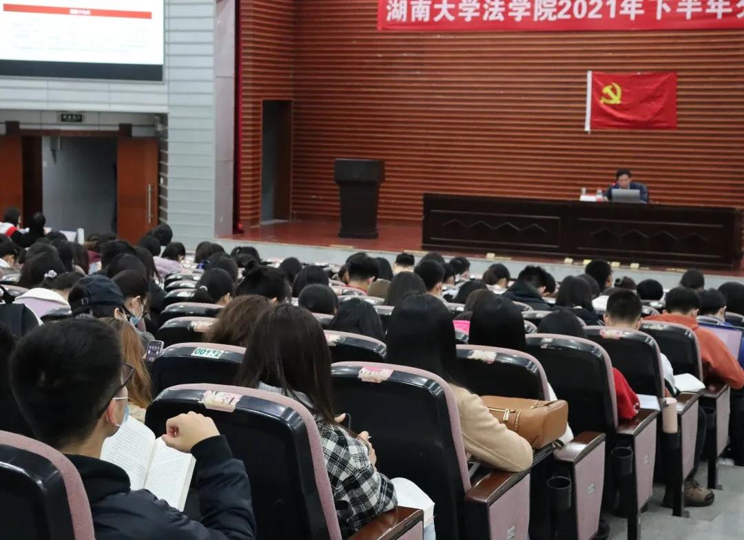 在切实贯彻“七一”重要讲话精神方面,易骆之老师从进一步深化对中国化马克思主义理论品质的认识,更好贯彻党的实事求是思想路线等五个方面增强同学们的政治自觉、思想自觉和行动自觉。他指出,湖南是伟人故里、将帅之乡、红色圣地,岳麓书院是党的实事求是思想路线策源地,他和同学们分享习总书记考察岳麓书院时的故事,希望同学更好地领会“实事求是”的含义,不忘先辈的精神,为中华民族伟大复兴贡献力量。最后,易骆之老师向同学们提出期待,“惟楚有材,于斯为盛”,楚湘福地,人才济济,青年是祖国的未来,民族的希望,当坚定地跟随党的步伐,勇做走在时代前列的奋进者、开拓者、奉献者,不负青春、不负韶华、不负时代。