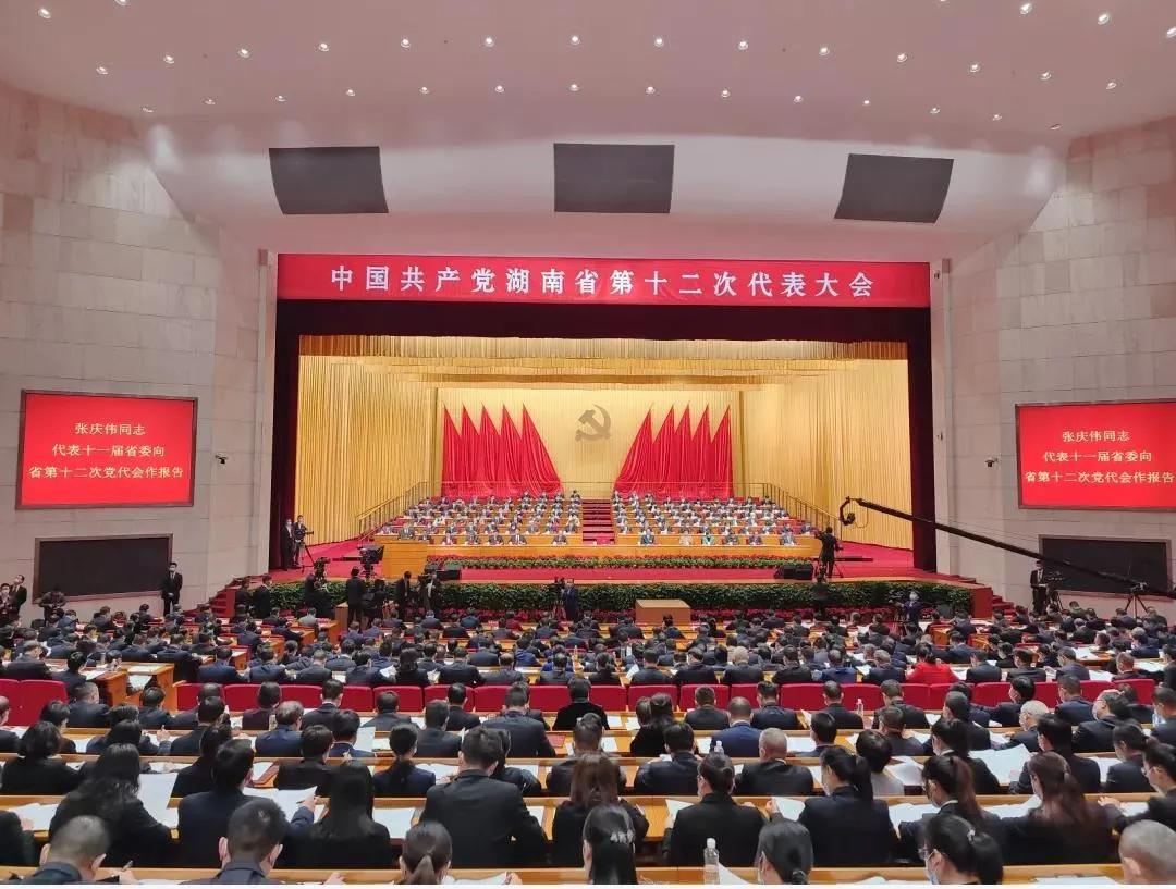 (11月25日上午,中国共产党湖南省第十二次代表大会在省人民会堂隆重开幕。张庆伟同志代表第十一届省委作报告。湖南日报全媒体记者 郭立亮/摄)