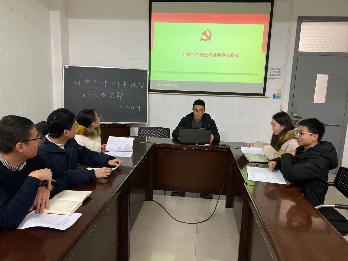 2020年10月26日至29日,党的十九届五中全会在北京举行,为深入学习十九届五中全会重要精神,研究生非全日制法律硕士党支部在学院上级党组织的指示下于2020年12月19日16:00-17:30在动漫色情片
