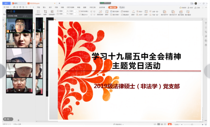 2019级法律硕士(非法学)党支部严格按照学校及学院党委要求,通过召开线上主题党日活动,深入学习党的十九届五中全会精神。