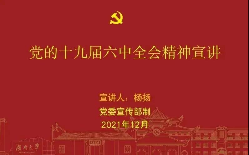 此次宣讲会的PPT由学校党委宣传部统一提供。宣讲报告围绕党的十九届六中全会召开的总体情况、深刻认识党的十九届六中全会重大意义、深刻认识党的十九届六中全会重要成果、如何宣传贯彻落实十九届六中全会精神等方面内容进行系统地宣讲,全面回顾了党的十九届六中全会精神。宣讲报告内容丰富、分析透彻,对加强党的历史和思想政治理论学习,提高党性修养,具有很强的理论指导作用。