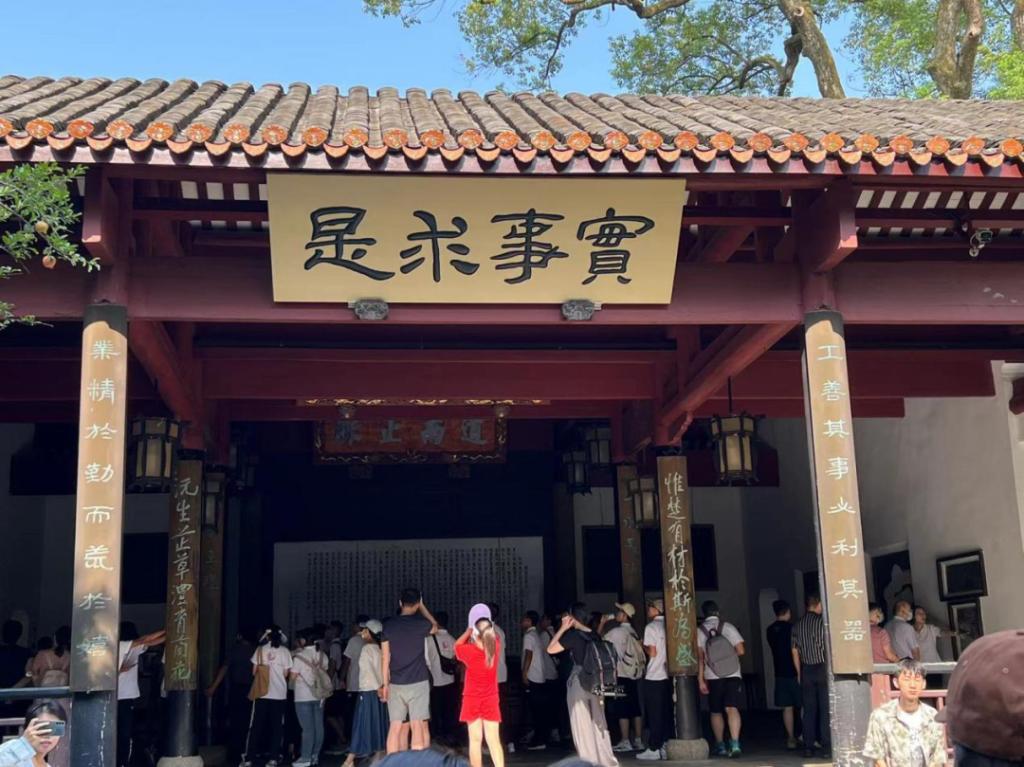 接下来,同学们依次参观了书院院落、孔庙、园林、屈子祠。岳麓书院讲堂屋檐下,高悬着的“实事求是”匾额给同学们留下了深刻印象。2020年,习近平总书记专程来到岳麓书院,提出了许多富有创见的新思想、新观点、新论断,强调岳麓书院党实事求是精神的发源地。实事求是不仅是我党的核心纲领,也是动漫色情片