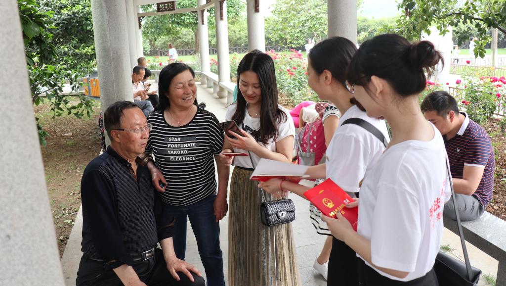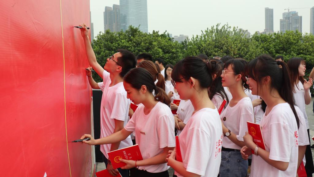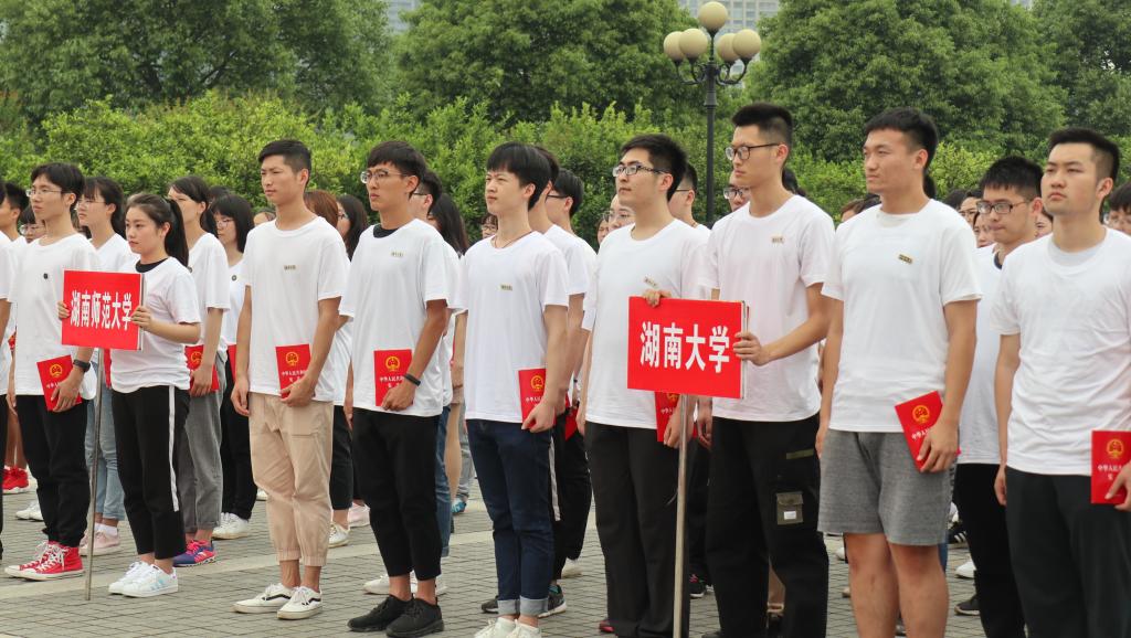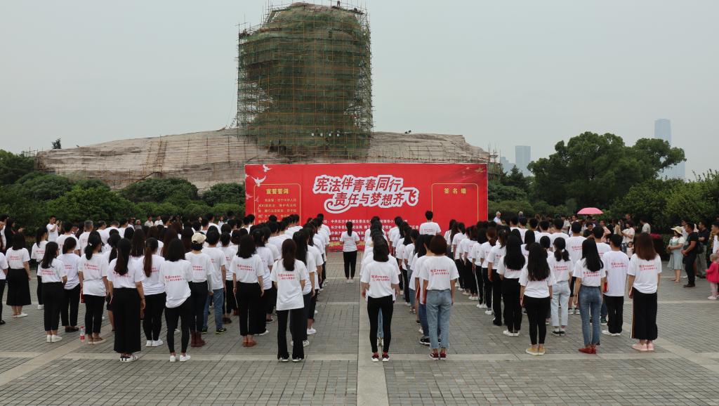 李宇哲同学的带领下,同学们手捧《中华人民共和国宪法》庄严宣誓,铿锵的誓词表达了全体青年学生学习宪法、忠于宪法、维护宪法,为建设法治中国不懈奋斗的坚定誓言。同学们还主动向橘子洲景区的游客发放宪法宣传材料,普及法律知识,提供法律咨询与服务。