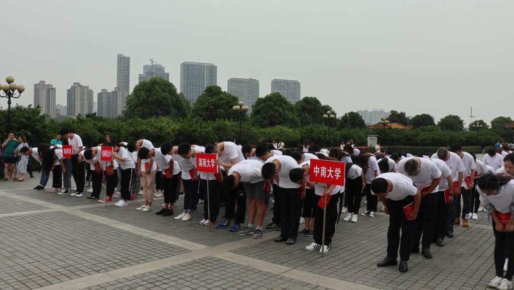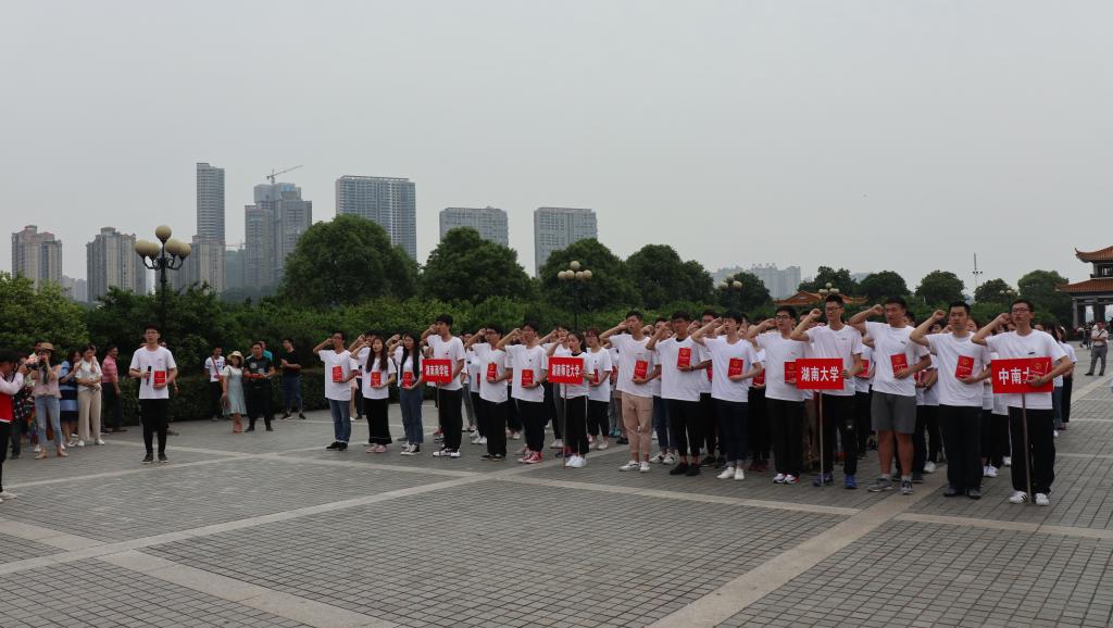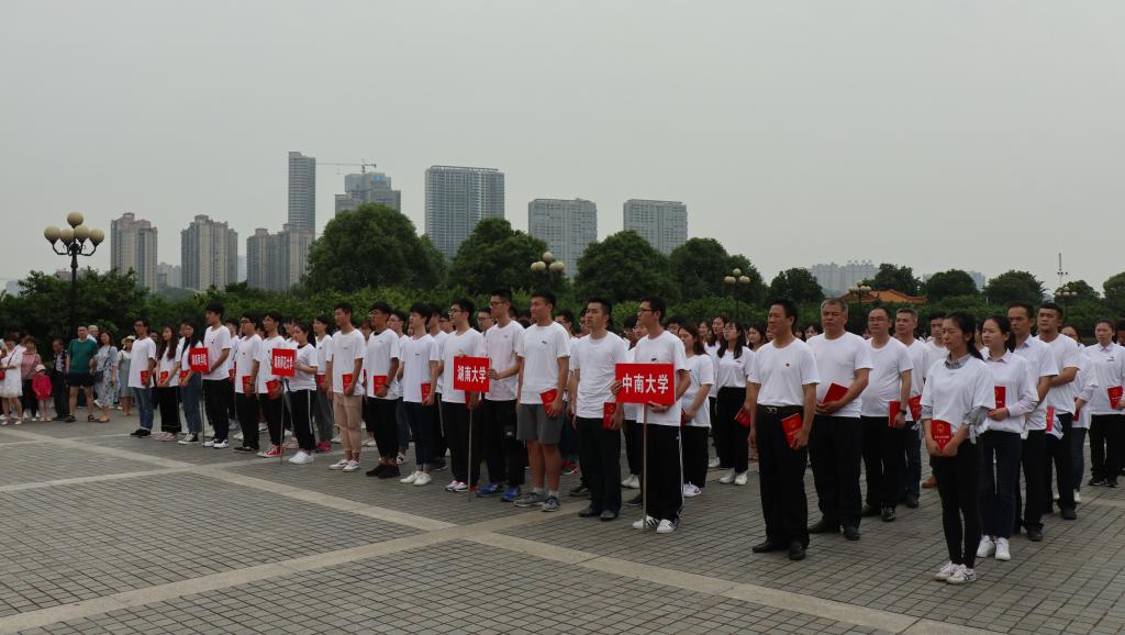 本科生2014、2016级联合党支部全体成员在橘子洲参加“宪法伴青春同行,责任与梦想齐飞”青年党员宪法宣誓活动,以庄严神圣的宪法宣誓仪式庆祝五四青年节。