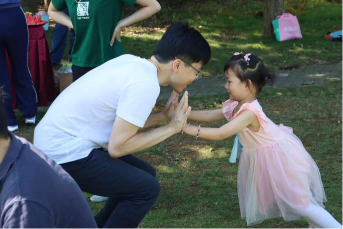 在“你比画我来猜”游戏中,家长和孩子们通过肢体语言和简单的描述,相互猜测对方的意图,这不仅锻炼了孩子们的表达能力,也加深了亲子间的理解和信任。