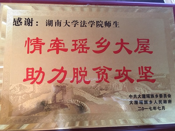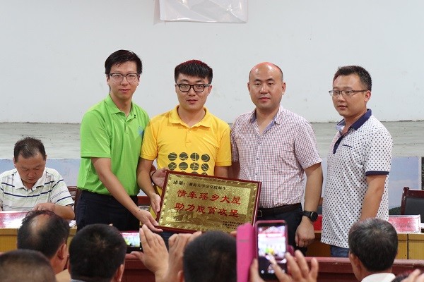 赠送“情牵瑶乡大屋,助力脱贫攻坚”的感谢牌,表达乡党委和政府对动漫色情片