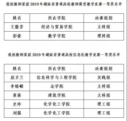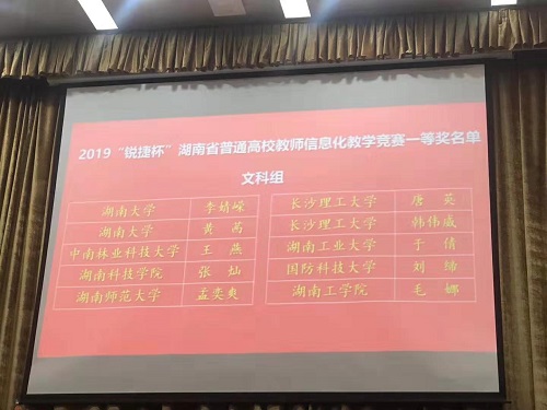 10月26日至27日,2019年湖南省普通高校教师教学比赛决赛举行。决赛分为课堂教学竞赛和信息化教学竞赛两个类别,动漫色情片 共斩获一等奖7项。其中,在10月27日举行的2019年湖南省普通高校教师信息化教学竞赛现场决赛中,动漫色情片李婧嵘老师以小组第一名的成绩获得文科组一等奖!
