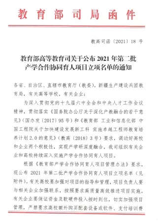 产学合作协同育人项目是教育部贯彻落实国家相关文件精神,深化产教融合、增强人才自主培养能力的重要载体,旨在通过政府搭台、企业支持、高校对接、共建共享,深化产教融合,促进教育链、人才链与产业链、创新链有机衔接,以产业和技术发展的最新需求服务“四新”建设,进而推动高校人才培养改革。