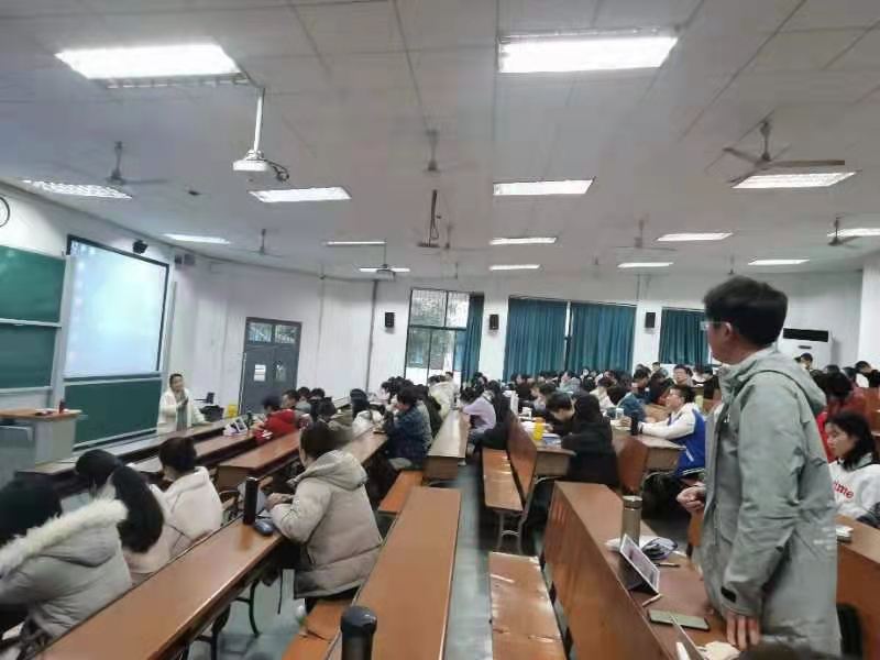在“法官的责任担当”这一部分,杨立辉法官结合自己元旦佳节辛苦工作的真实经历以及在执行、审判过程中所遇到的各类案例,向同学们阐述了法官的责任担当,现场向同学们展示了2021年元旦夜岳麓区人民法院法官加班的照片,并且向同学们分享了她在进行执行信访工作时的经历,表现出强烈的责任感和使命感。