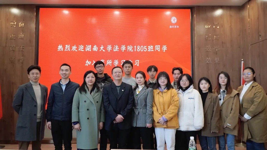 之后,湘军麓和律师事务所在会议室为同学们举行了欢迎仪式。出席此次欢迎仪式的有湘军麓和律师事务所董事会副主席莫路明、业务培训与青年律师委员会主任钟银意、高端民商事争议解决委员会主任刘毅、资本市场法律事务专业委员会副主任梁心辰、行政总监刘艳、市场总监陈彪等。