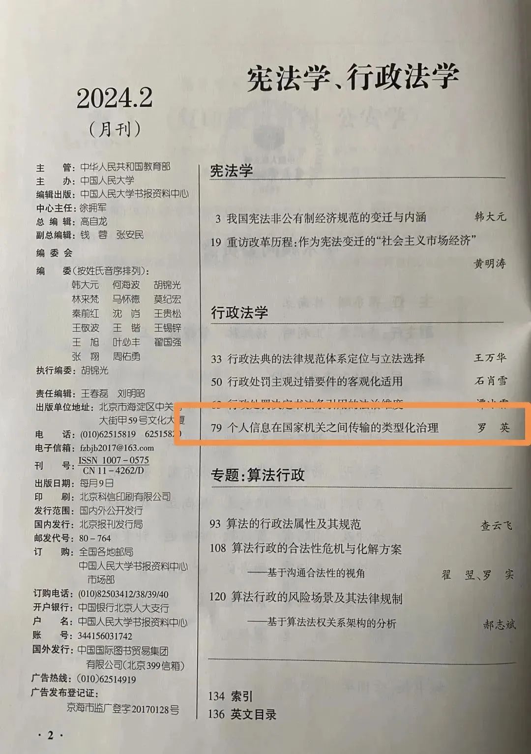 罗英副教授论文被人大复印报刊资料《宪法学、行政法学》2024年第2期全文转载
