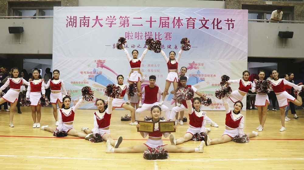 啦啦操代表队获得规定套路项目甲组第一名、自编项目甲组第三名的好成绩。