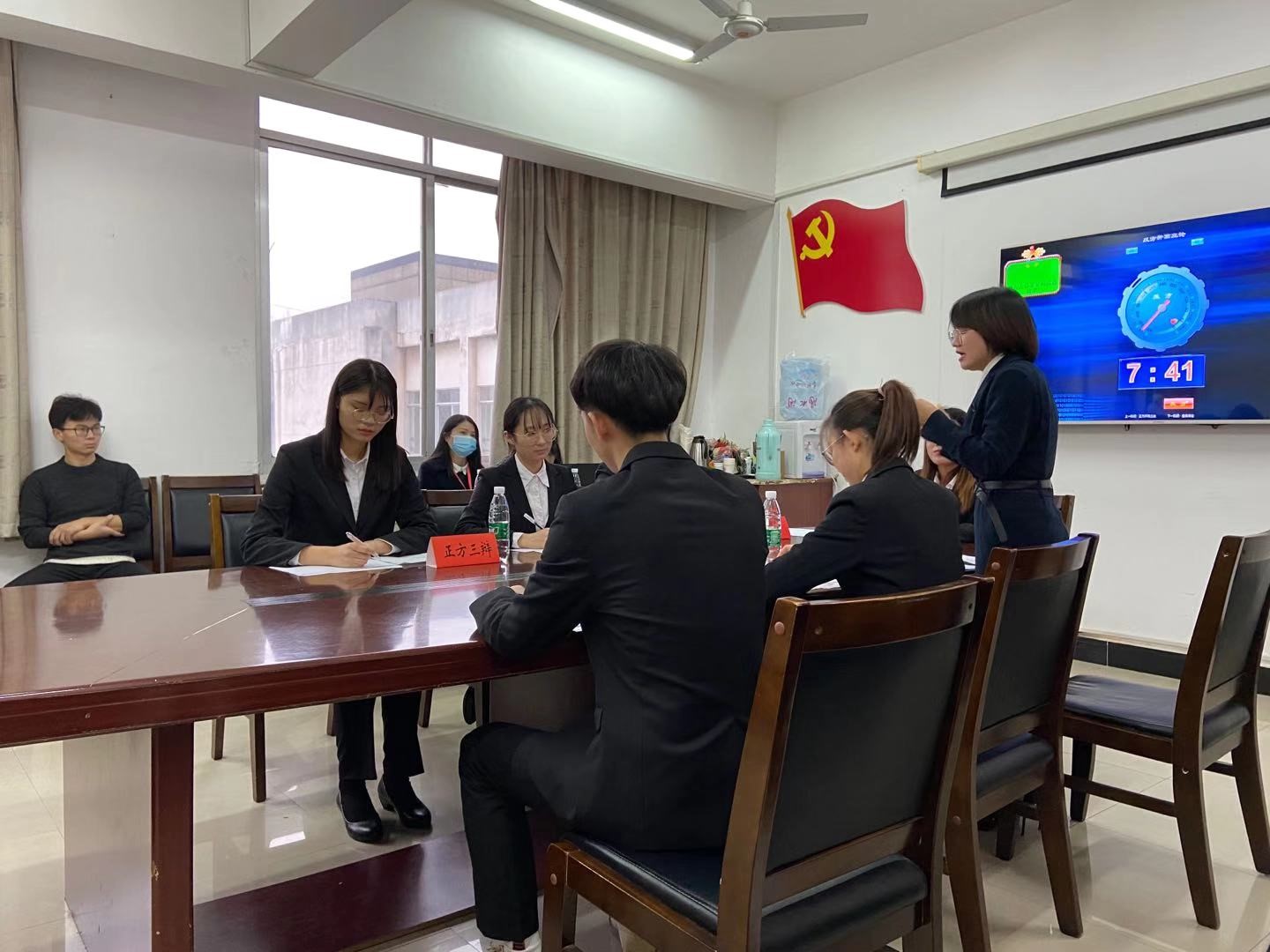 一队:万欣涛(一辩)、袁莹(二辩)、刘丽娜(三辩)、杨睿、苏小娟
