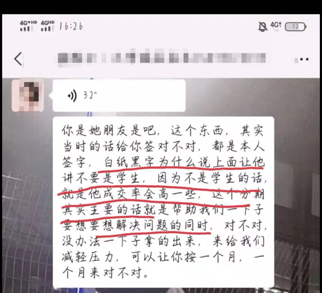 进入谈判。我利用本学期合同法总论课堂上学到的“合同相对性原理”知识,对商家方所说的“商家方能够暂停与当事同学与贷款平台的贷款关系”发出质疑后,商家方坦诚说道:第三方的“贷款平台”其实和商家方有着合作关系,商家引导消费者进行贷款,贷款平台一方面赚取消费者的利息,一方面回返一定金额给商家......