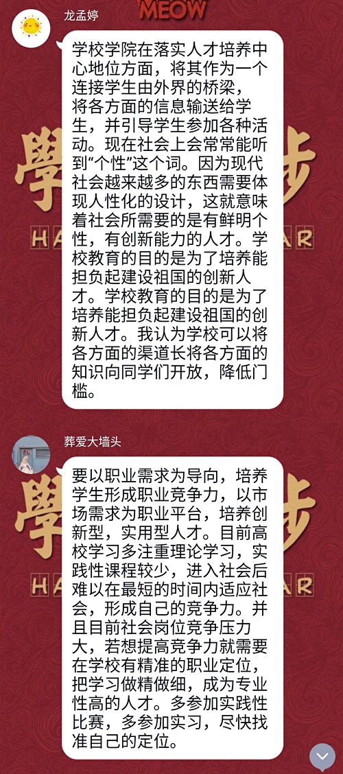 同时同学们也对学院工作提出几点建议: