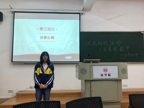 303教室举行以“担起时代使命,不负青春韶华”的主题班会。本次会议由班长罗华宇同学主持,法学1801班全体成员参加会议。