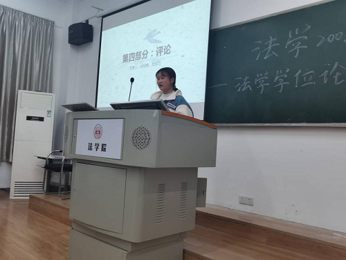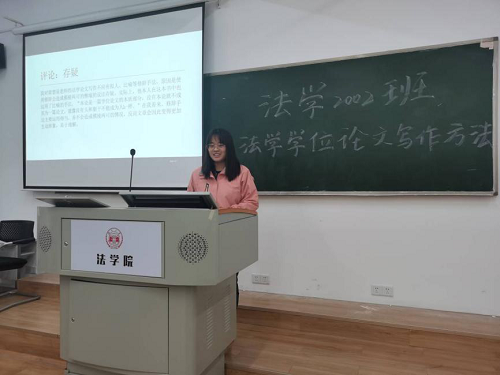 303教室顺利开展。法学2002班班主任龙博老师以及法学2002班全体成员参加读书报告会。读书会围绕着法学家梁慧星教授的《法学学位论文写作方法》展开,由三个读书小组分别派代表上台进行汇报展示。
