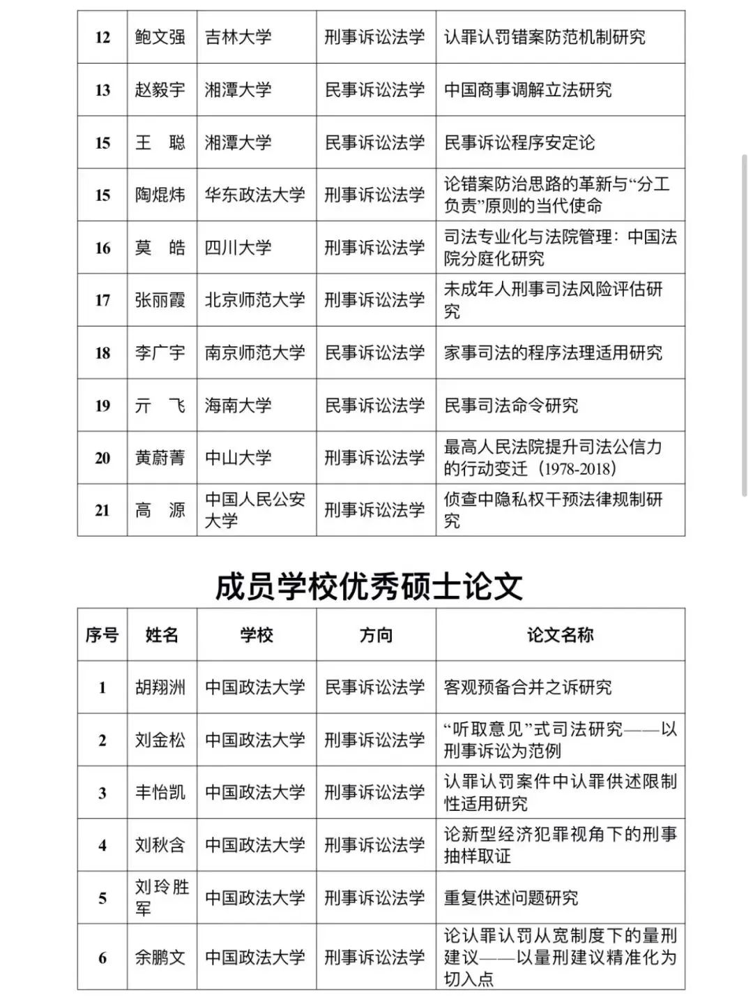 第五届陈光中诉讼法学优秀研究生学位论文奖于近日公布。本届评奖从三大诉讼法领域共评选出优秀博士论文23篇,优秀硕士论文40篇。动漫色情片青年教师王聪博士的《民事诉讼程序安定论》、林婧博士的《刑事证据印证规则研究》同时荣获该奖项。王聪老师除获得本届陈光中诉讼法学优秀学位论文奖之外,还曾经荣获第五届陈光中诉讼法学奖(2012)和第八届陈光中诉讼法学奖(2020)。