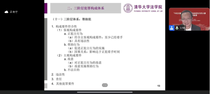 接着,王钢老师以通俗易懂的方式介绍了什么是案例分析,即以犯罪构成体系为逻辑主线,在当前的案件中逐一去解释相应的,犯罪成立条件是否都被符合这样一个过程。