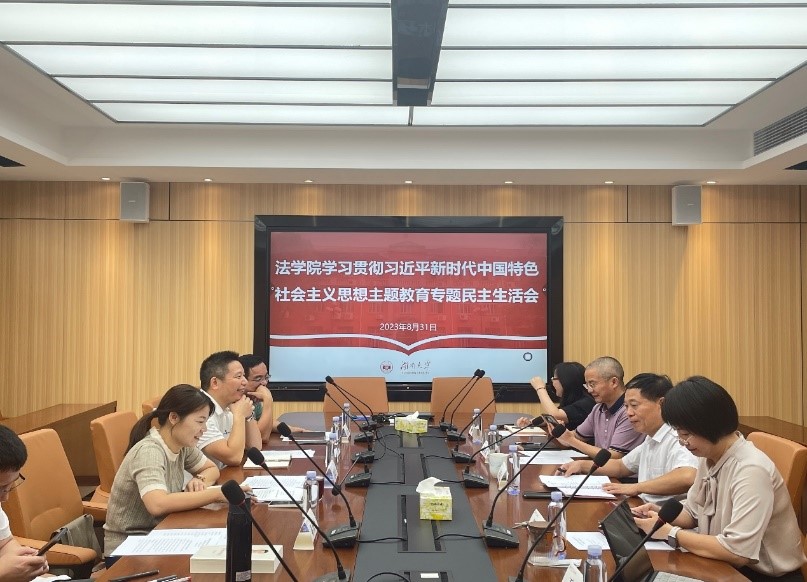 在216会议室召开2023年度学习贯彻习近平新时代中国特色社会主义思想主题教育专题民主生活会。学校主题教育第六联络组范媛吉同志来院指导。院党委书记易骆之同志主持会议,学院班子成员黎四奇、罗英、喻玲、湛建云、蒋海松及组织员马启明同志参加会议,无党派人士王文胜列席会议。