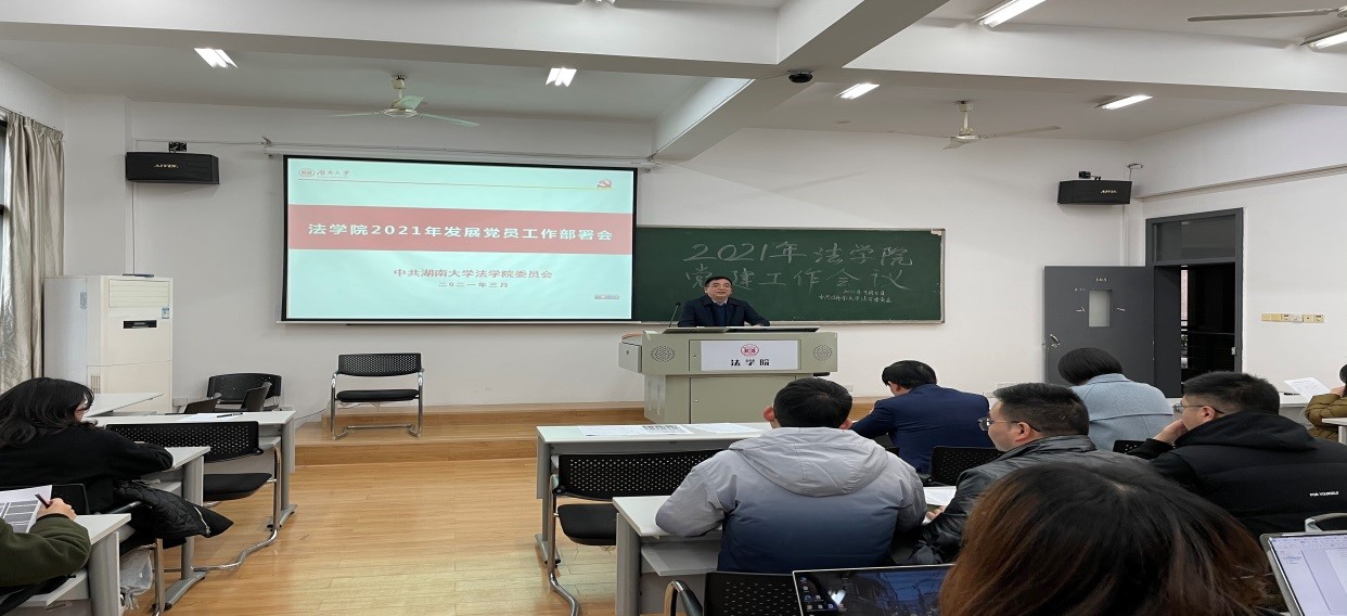 党委在法学楼303教室召开2021年发展党员工作部署会。党委书记易骆之,党委副书记、纪委书记罗英、副处级组织员马启明、学院所有学生党支部支委委员参会,党务干事成凤仪主持会议。