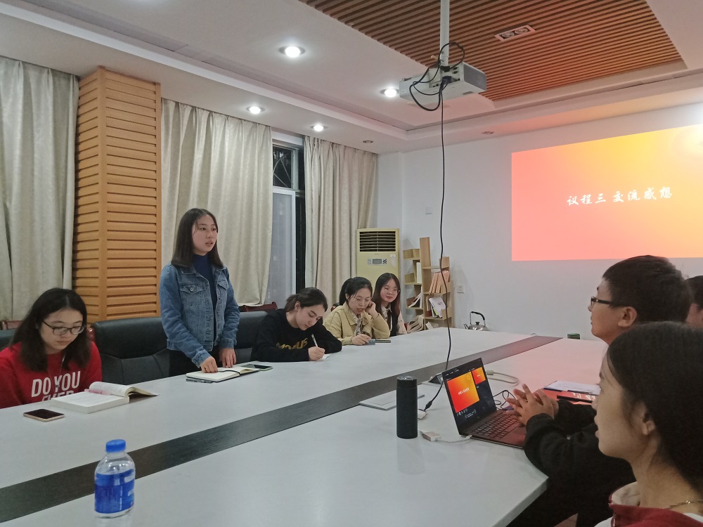 视频播放结束后,党支部成员们积极交流各自感想。党支部组织委员金矗同志率先表示,作为学生党员,同志们应当不忘法学初心,牢记使命担当,提高思想道德素质,努力学习专业知识,永远做党的初心和使命的实践者。支部成员钱娅同志结合暑期参观彭德怀纪念馆的实践活动经历谈到,老一辈革命家坚守初心,以身许党许国,以身报党报国,鞠躬尽瘁,死而后已,用他们一生对理想信念的执着追求和坚守为广大青年党员树立光辉的榜样。作为共产党员,同志们理应坚定理想信念,坚守共产党人精神追求,勇担新使命,做出新贡献。支部成员黄前玮同志则从“守初心、担使命、找差距、抓落实”的总要求出发,他认为自己的理论水平还有待提高,距离优秀的共产党员还有差距,日后将有的放矢进行整改,以高标准严格要求自己。