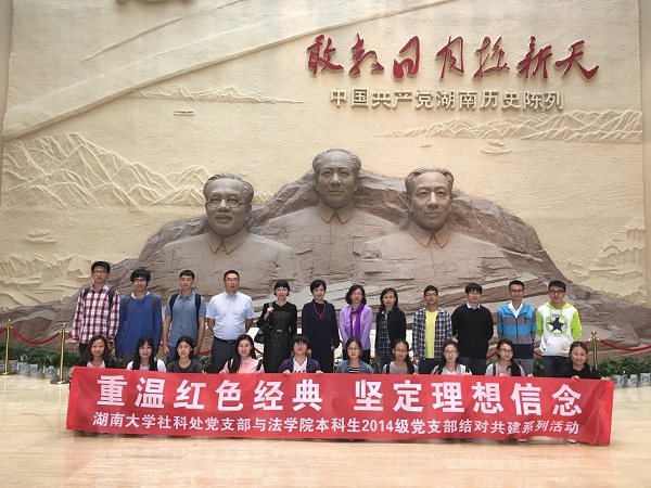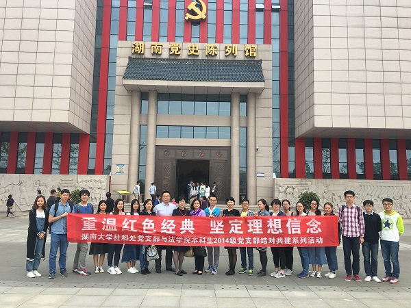 本科生2014级党支部全体党员赴湖南党史陈列馆开展“两学一做”学习教育暨支部结对共建活动,重温峥嵘岁月,缅怀英雄事迹,感受伟人情怀,接受心灵洗礼。