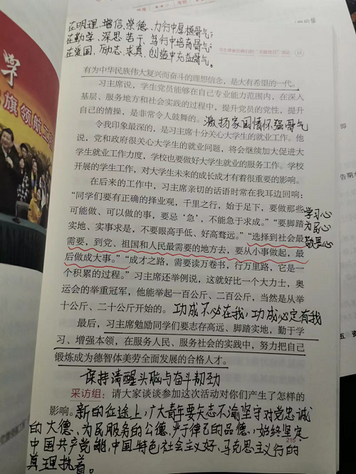 最后,同学们相互展示了阅读《习近平与大学生朋友们》一书后形成的读书笔记。