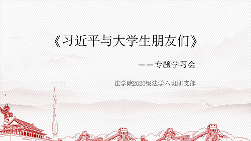 2022年4月28日,共青团中央、全国青联、全国学联、全国少工委在京召开《习近平与大学生朋友们》第二卷连载出版座谈会。《习近平与大学生朋友们》系列采访实录讲述了不同时期习近平同志关心关爱大学生的生动故事,是广大青年学生立志修德、广大青年工作者做人做事、广大团员青年努力成长为堪当民族复兴重任时代新人的生动教材。为贯彻会议精神,法学本科2020级各团支部组织开展学习《习近平与大学生朋友们》主题团日活动。