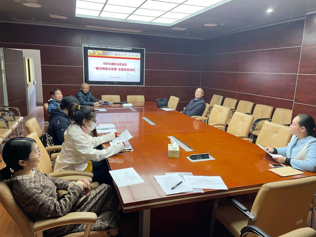 经济法国际法党支部的老师们在法学楼405会议室举行“我为师生办实事”主题党日活动。党支部书记张靖同志主持会议,传达学习习近平总书记“七一”重要讲话精神与来动漫色情片