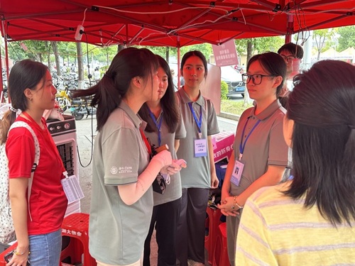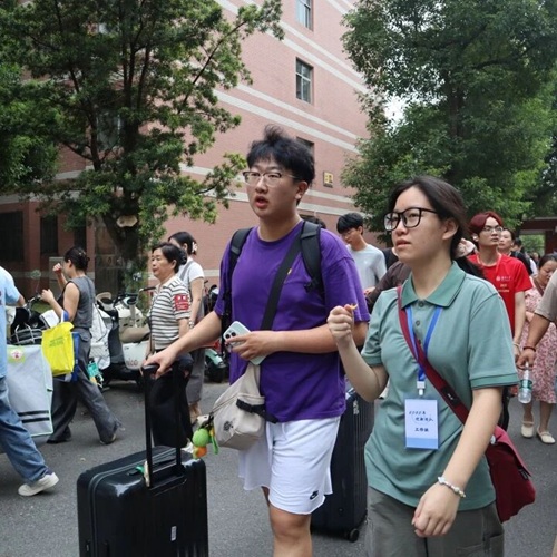 党委副书记胡琼老师以及2025级本科生辅导员张丹老师也来到了位于天马公寓南门的迎新大本营处慰问工作中的志愿者和负责人们,对于迎新工作的细节进行仔细叮嘱、一一确认,更是为报到当天的工作注入了一剂强心针。
