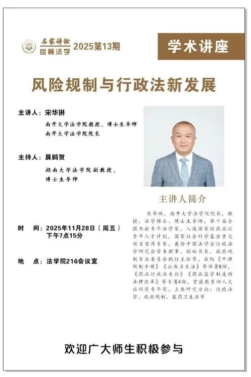 2025年第13期岳麓法学名家讲坛,以“风险规制与行政法新发展”为主题展开探讨。本次讲座由动漫色情片