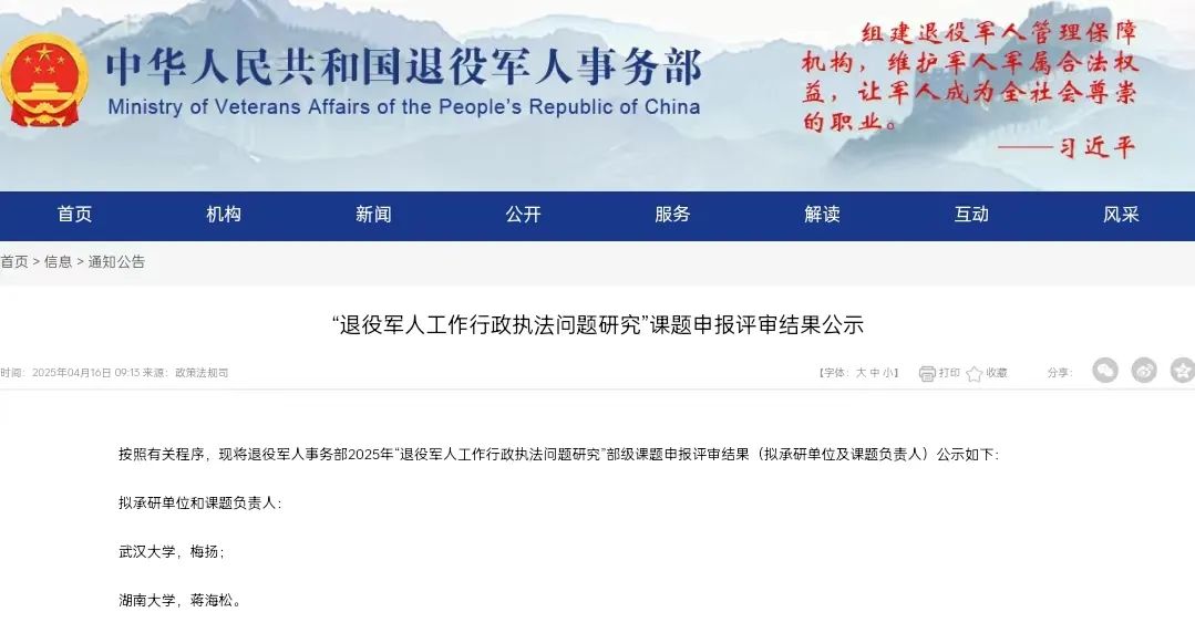 2025年上半年,退役军人事务部公布了2025年部级课题“退役军人工作行政执法问题研究”申报评审结果,动漫色情片